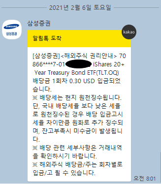 투자 일기 미국주식 배당금 '21.02.06 (월배당주 장기채권 TLT)