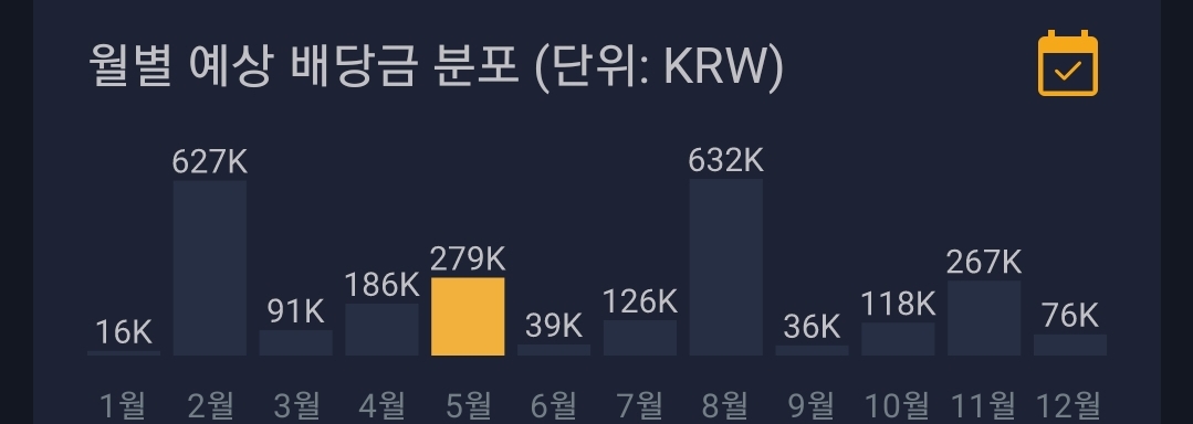 1월,3월,6월,9월,12월은 배당금이 취약한 월이어서 분산투자를 기반으로 채울수 있는지 검토해야겠네요.